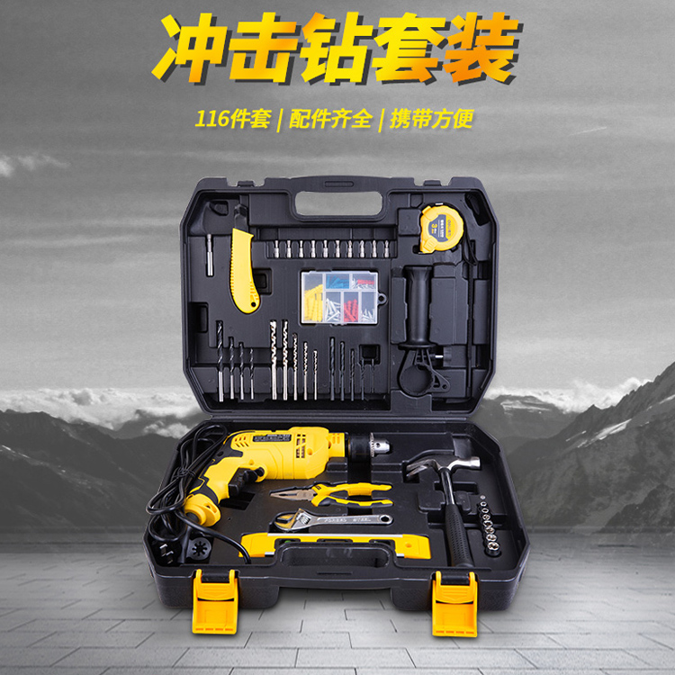得力工具電鉆家用沖擊鉆電動(dòng)工具多功能螺絲刀手槍鉆手電轉(zhuǎn)套裝