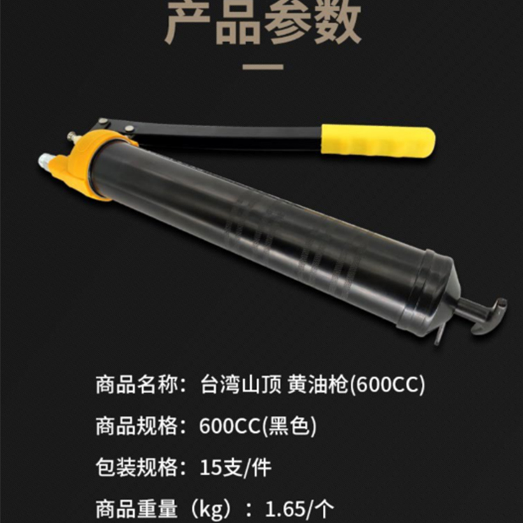 臺灣山頂 黃油槍(600CC),包膠輸油壓桿手柄,抽油時手感握持舒適。