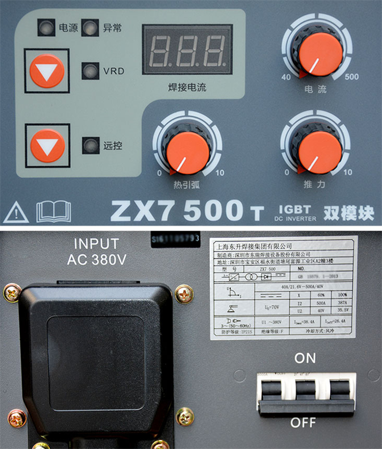 上海東升工業(yè)級ZX7-500T直流電焊機400工業(yè)型雙模塊380V銅芯面板大圖