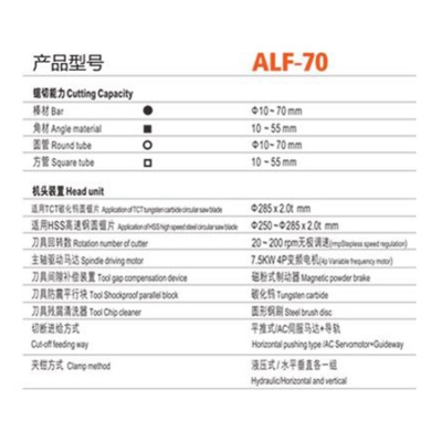 浙江奧林發(fā)CNC高速金屬圓鋸機 ALF-70,產(chǎn)品參數(shù)圖。