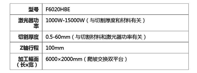 百盛激光 F6020HBE 雙平臺(tái)板管一體激光切割機(jī)參數(shù)