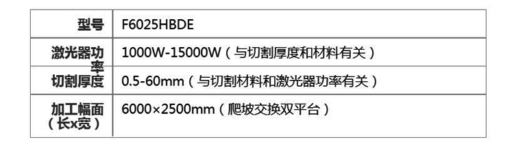 百盛激光 F6025HBDE 大包圍雙平臺(tái)板管一體激光切割機(jī)參數(shù)