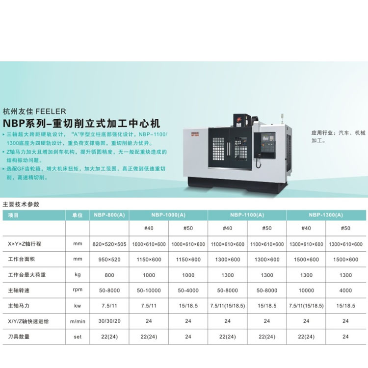 重切削立式加工中心機應用行業(yè):汽車、機械加工