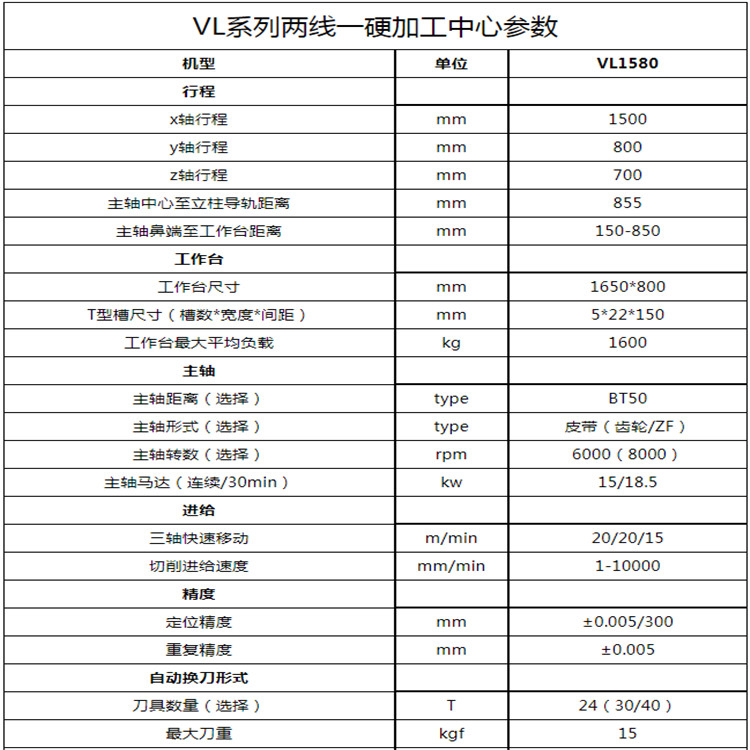 雅力士精機VL1580兩線一硬加工中心參數(shù)