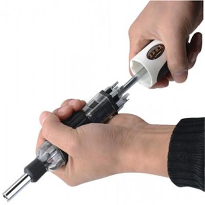 材 質(zhì): 碳鋼 裝箱數(shù)量: 120pcs 外箱尺寸: 52×27×28cm 毛/凈重: 23kg/21kg 產(chǎn)品描述: 1、集成型工具是結(jié)構(gòu)緊湊、操作方便。一把頂十二把,手柄中存有6個不同規(guī)格的旋具頭,是維修、保養(yǎng)、家庭使用的首選工具;