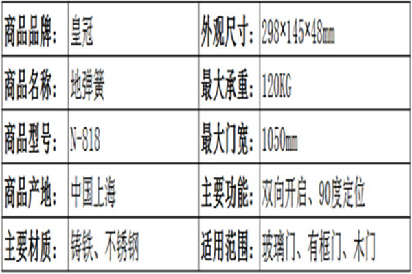 CROWN皇冠地彈簧N-818不銹鋼面板液壓地簧參數(shù)