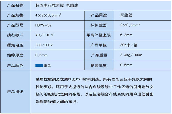 超五類八芯網(wǎng)線參數(shù)展示圖