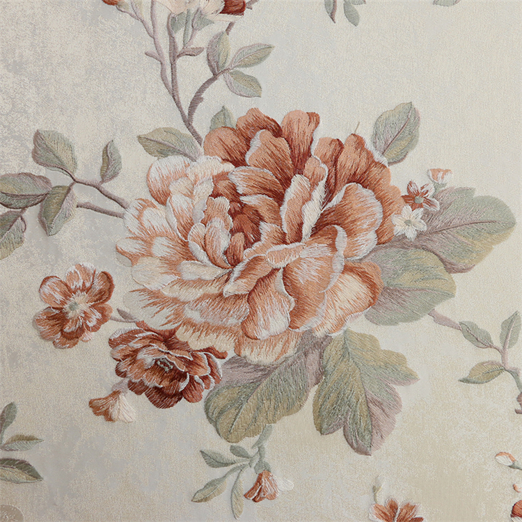 紅色牡丹提花墻布/遮光/裝飾 廠家定制刺繡圖