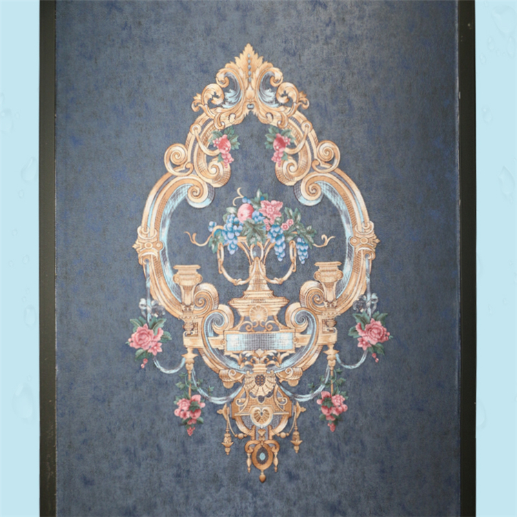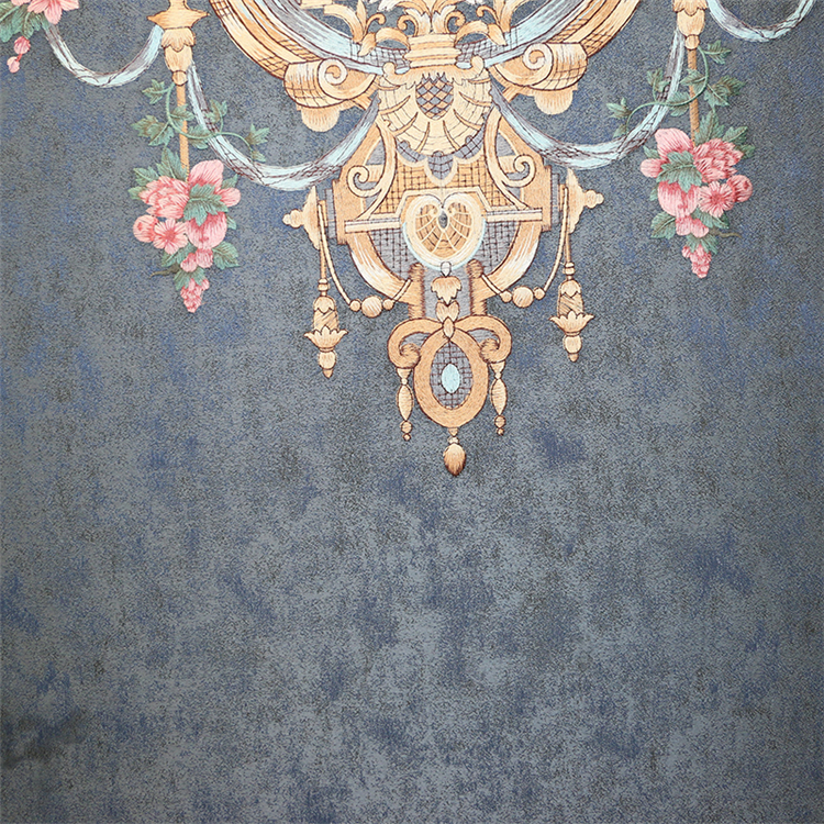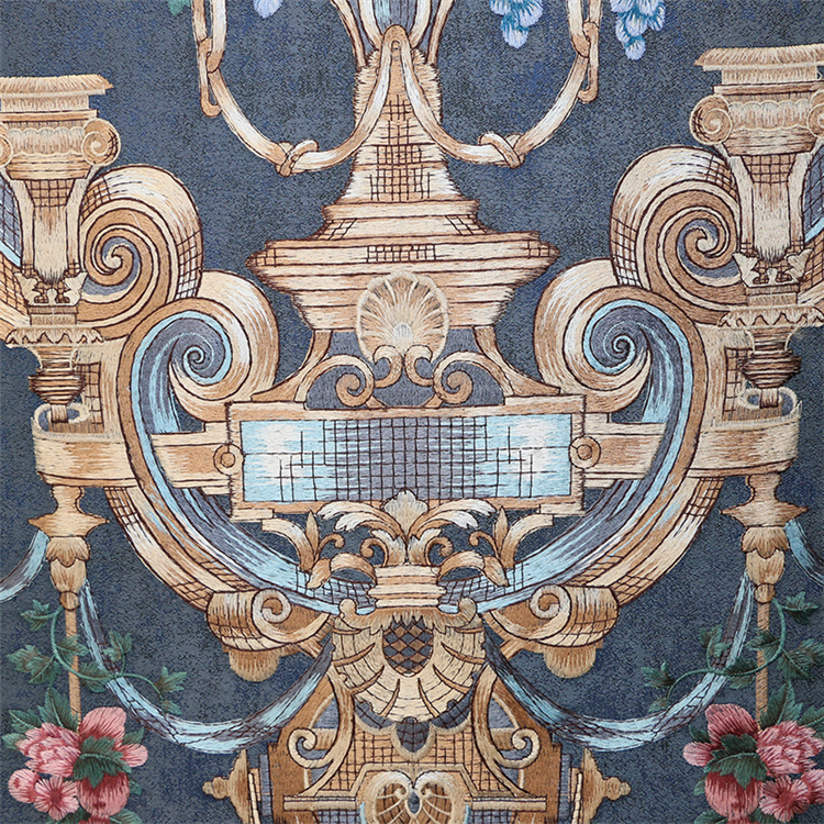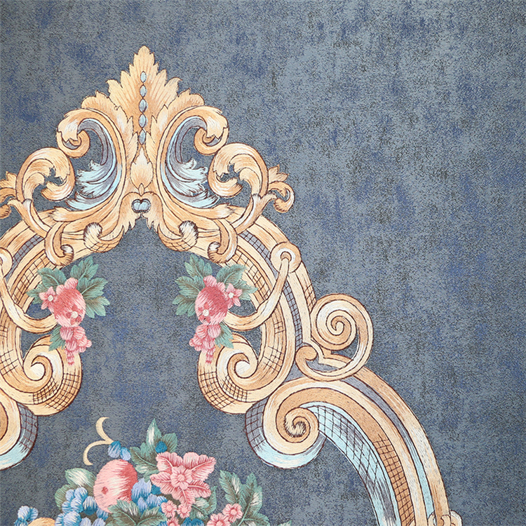 蘭爵 藍色歐式大花紋 提花墻布整體圖