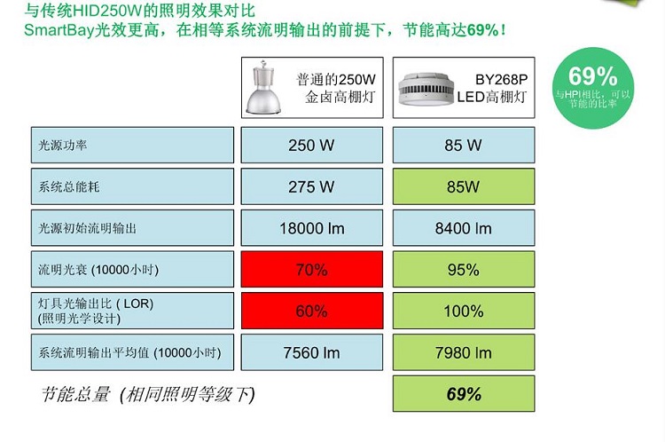 飛利浦低天棚L(fēng)ED工礦燈 LED V.S HID 節(jié)能分析