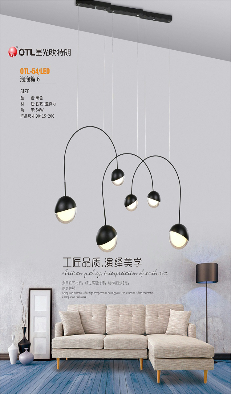 歐特朗OTL-18 北歐極簡餐廳吊燈采用鐵藝材料,高溫烤漆,結(jié)構(gòu)堅(jiān)固