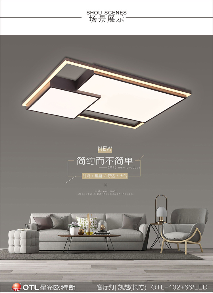 歐特朗OTL-102+66/LED凱越|簡約家居吸頂燈采用亞克力、鐵藝、鋁材,經(jīng)久耐用