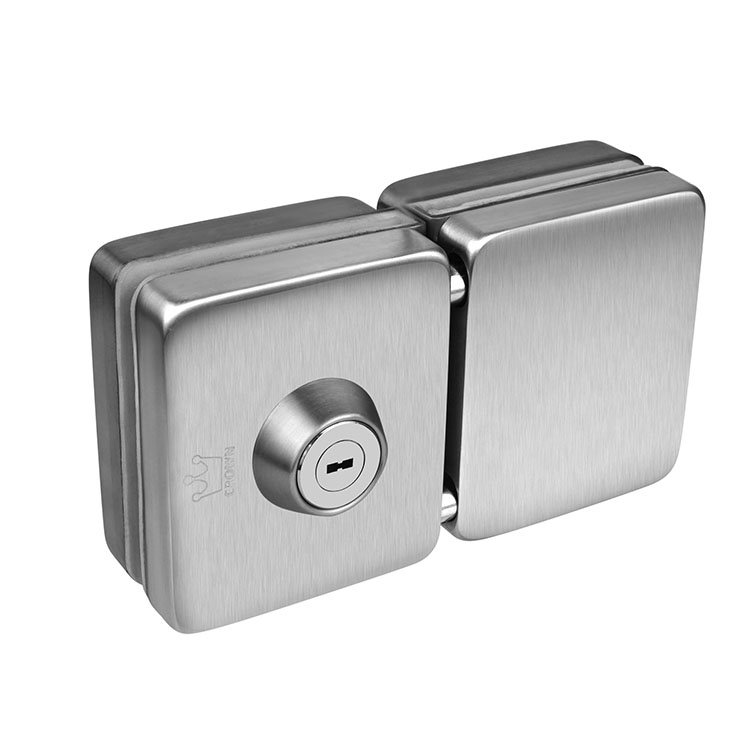 上海皇冠門鎖 12mm免開孔玻璃門 不銹鋼雙門中間鎖,