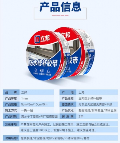 立邦防水膠帶,以優(yōu)質丁基橡膠為基料