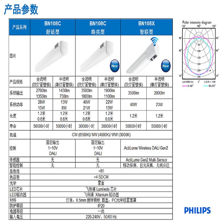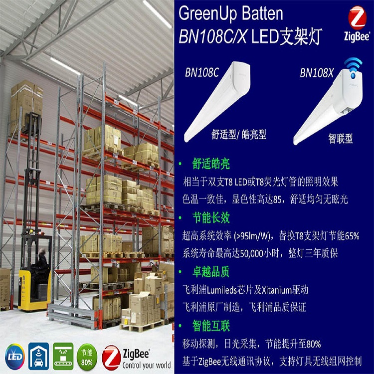 飛利浦新一代GreenUp BN108一體化LED支架燈具