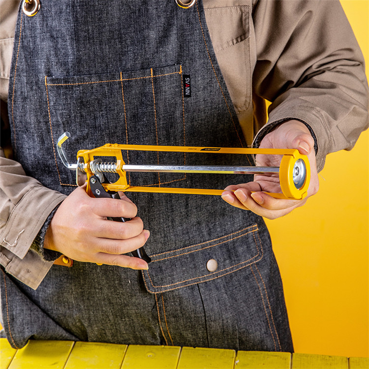 旋轉(zhuǎn)式玻璃膠槍推桿釋放按鈕,按下后可以釋放多余壓力,避免硅膠外泄