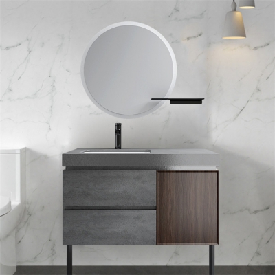 落地浴室柜線段切割,減少包裹,簡(jiǎn)約設(shè)計(jì),帶來(lái)強(qiáng)烈的現(xiàn)代感雅豪灰飾面,