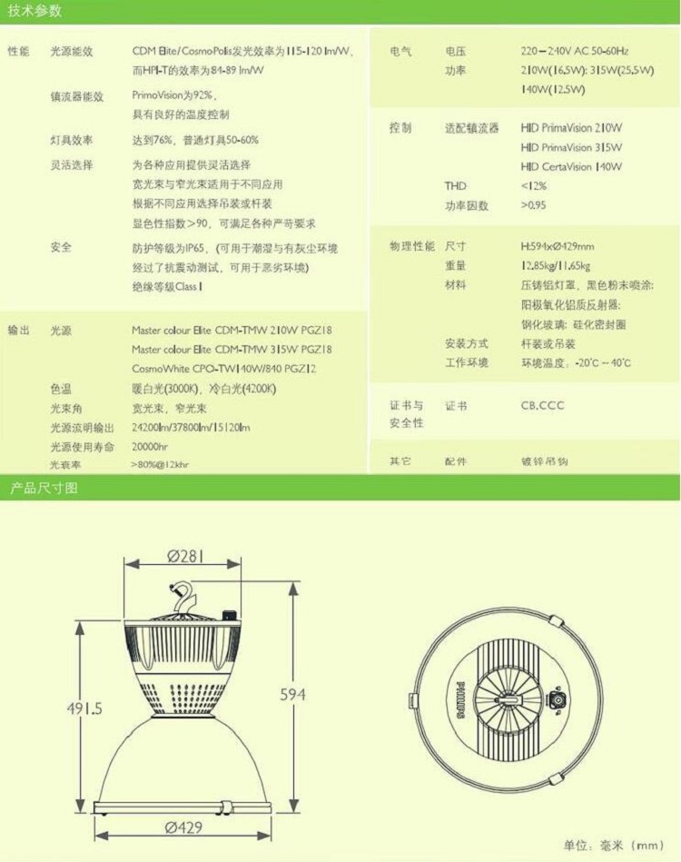飛利浦高天棚照明燈倉庫車間體育館工礦燈MPK518