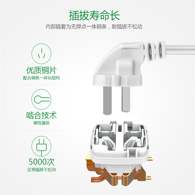 33%;安全保護(hù)門,防止意外戳入引發(fā)觸電;一體鍍鎳銅構(gòu)件,精工嚙合,插拔自