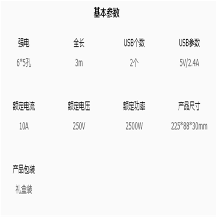 公??闺娪糠肋^載插線板 GN-H4053基本參數(shù)圖。