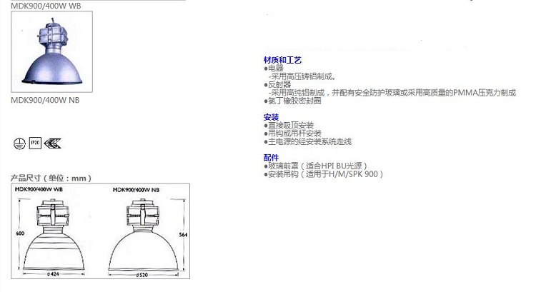 ●適合選配中低功率HID光源: 150W.250W或400W HPI/SON ,也可根據(jù)