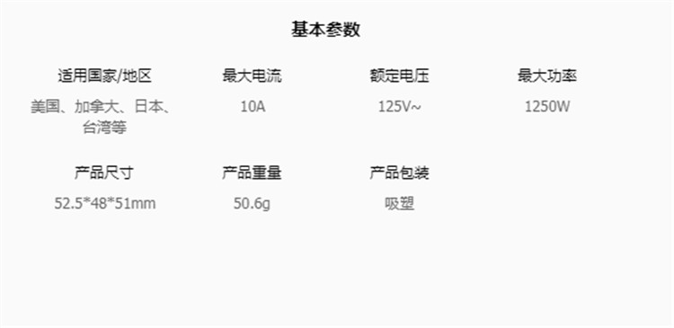 公牛GN-L01A美標(biāo)旅行電源轉(zhuǎn)換器基本參數(shù)圖