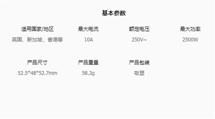 公牛GN-L01E英標(biāo)旅行電源轉(zhuǎn)換器基本參數(shù)圖