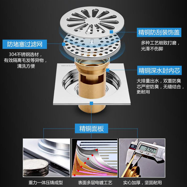 全銅地漏,防臭防蟲,全銅材質表里如一。