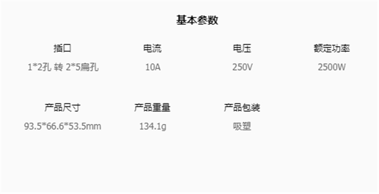 公牛GN-932K插座轉(zhuǎn)換器基本參數(shù)圖
