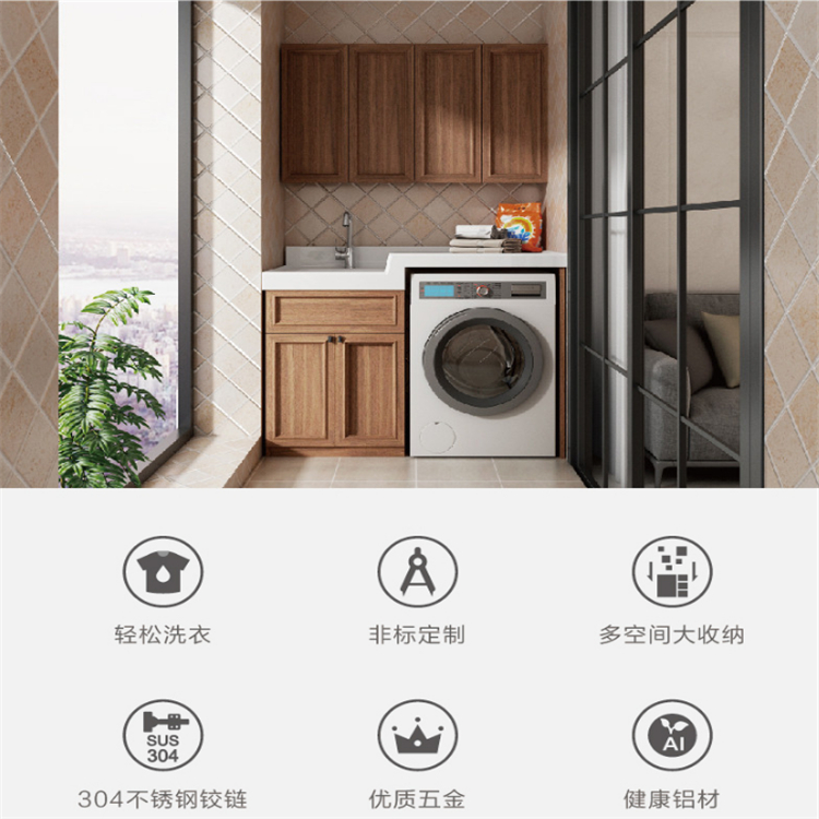 高效收納鋁合金洗衣柜為您量身定制多功能的陽臺洗衣柜,傾心打造陽臺空間。