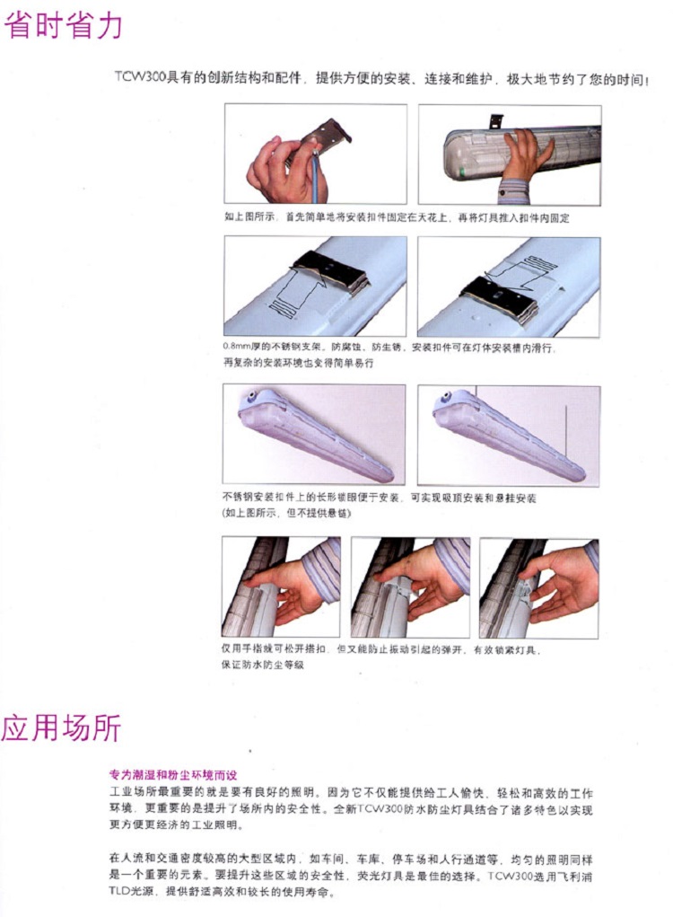 專業(yè)設(shè)計的密閉結(jié)構(gòu),經(jīng)久耐用的抗紫外聚碳酸醋燈體和前罩,結(jié)合特別設(shè)計的搭扣,有效地保證TCW300的防水和抗沖擊性能。