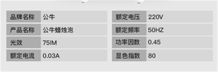 公牛LED蠟燭泡MQ-D003/MQ-D005基本參數(shù)圖