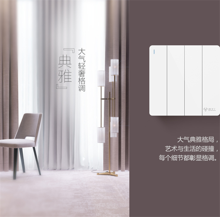 公牛四位雙控帶熒光標(biāo)識開關(guān)G28K412B純粹輕簡,卻處處流露清爽舒適,細(xì)節(jié)營