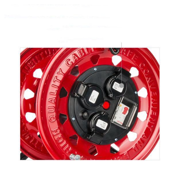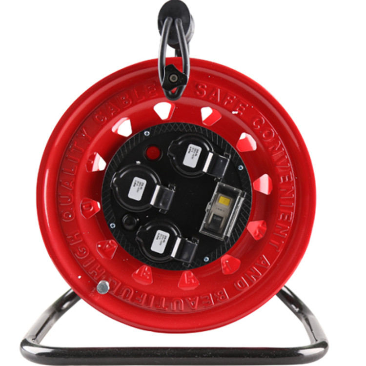 德力西移動電纜盤專利型紅黑支架造型,識別度高 ,支架采用靜電噴塑處理,不易褪色掉漆耐腐蝕