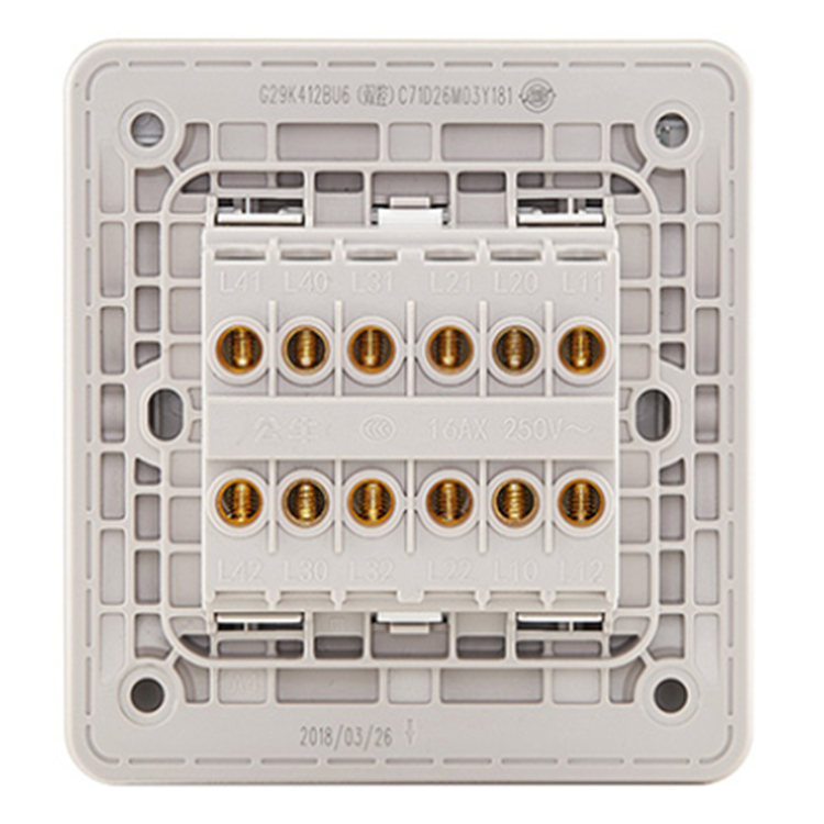 公牛四位雙控帶熒光水晶開關G29K412B大面板設計,靈巧簡約,渾然一體。