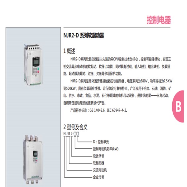 正泰NJR2-D系列軟起動器 產品符合標準:GB/T 14048.6、IEC 60947-4-2。