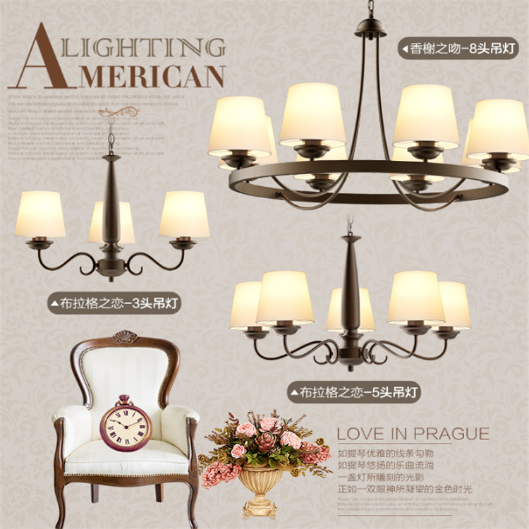 美式吊燈套餐 復(fù)古簡約時(shí)尚鐵藝客廳吊燈 布拉格之戀