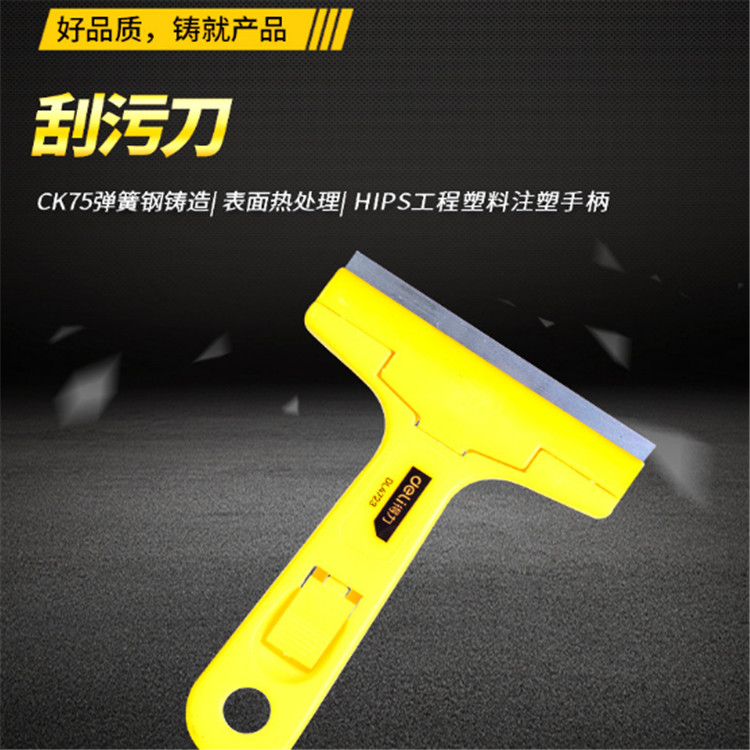 得力刮污刀刀片采用CK75彈簧鋼,表面熱處理,切削鋒利。