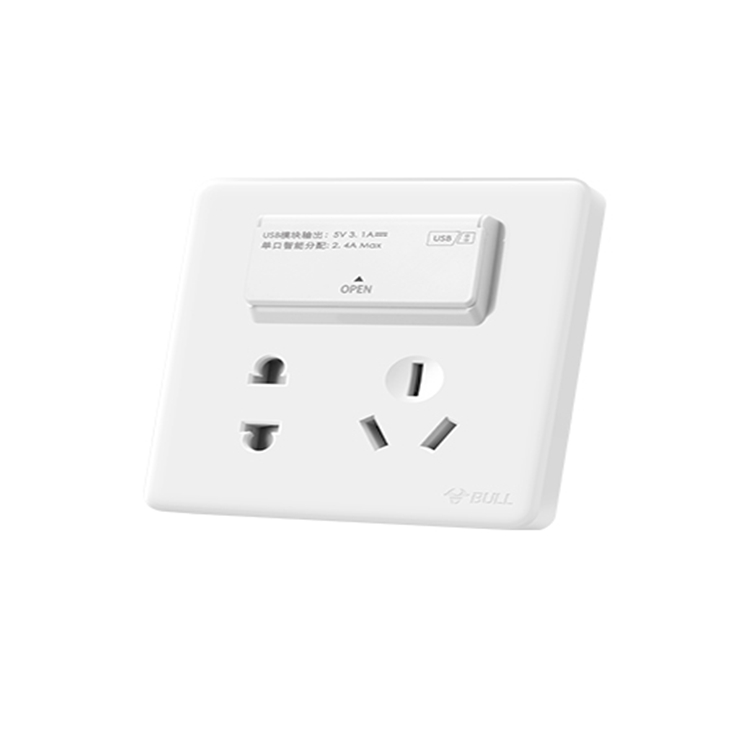 公牛二三極+三位USB插座G28E536面板家用暗裝墻式墻壁