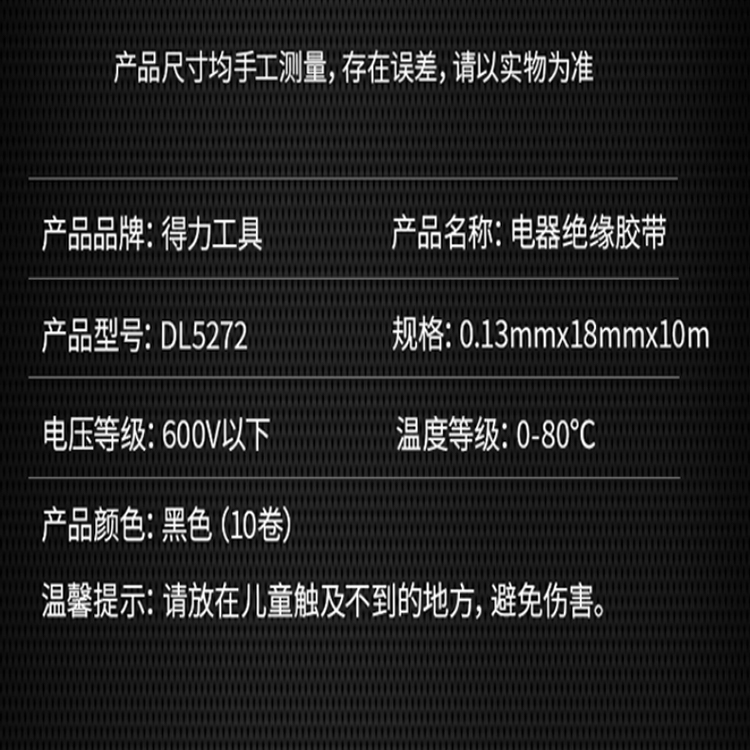 得力(deli) PVC電氣絕緣膠帶電工膠布 無鉛阻燃防水膠布10米*10卷 黑色 RoHS 2.0