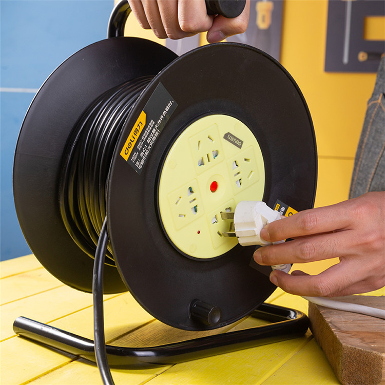 得力電纜線盤20/30/50M米電線纜繞卷線盤插線板線軸拖線盤