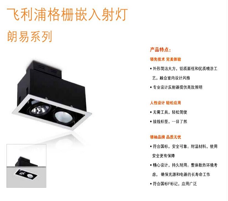 朗易系列嵌.入式格柵射燈,安全可靠并有多種光源組合可供選擇