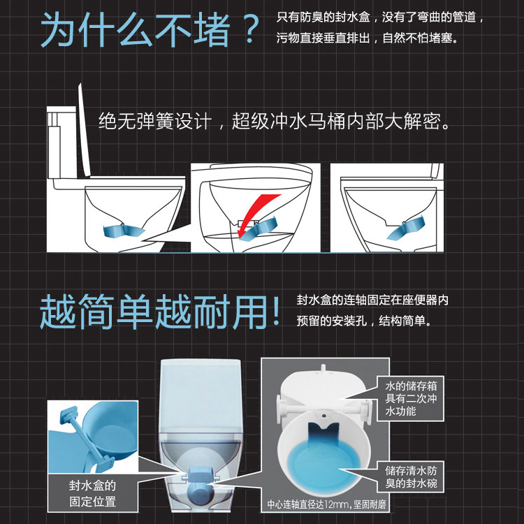 無虹吸,阻耗為零,傾倒排污無噪音。