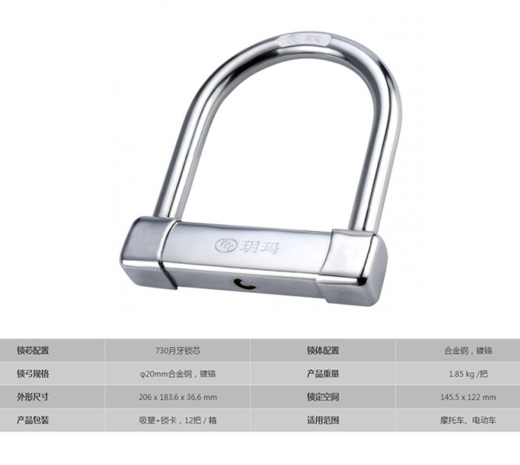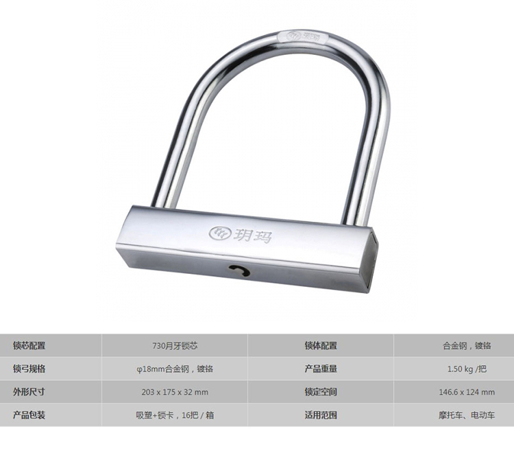 玥瑪鎖摩托車鎖電動(dòng)車鎖防盜鎖U形鎖