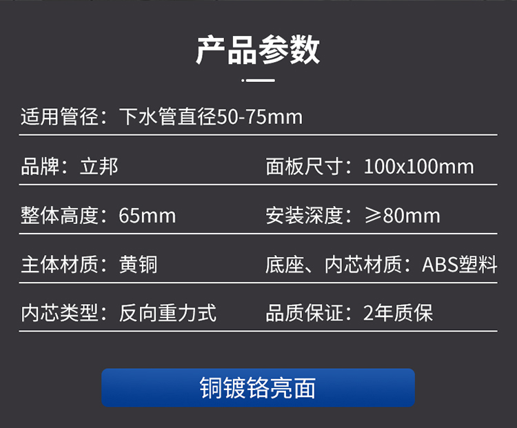立邦洗衣機地漏專用淋浴地漏接頭排水管下水道防臭防溢水器衛(wèi)生間參數(shù)圖