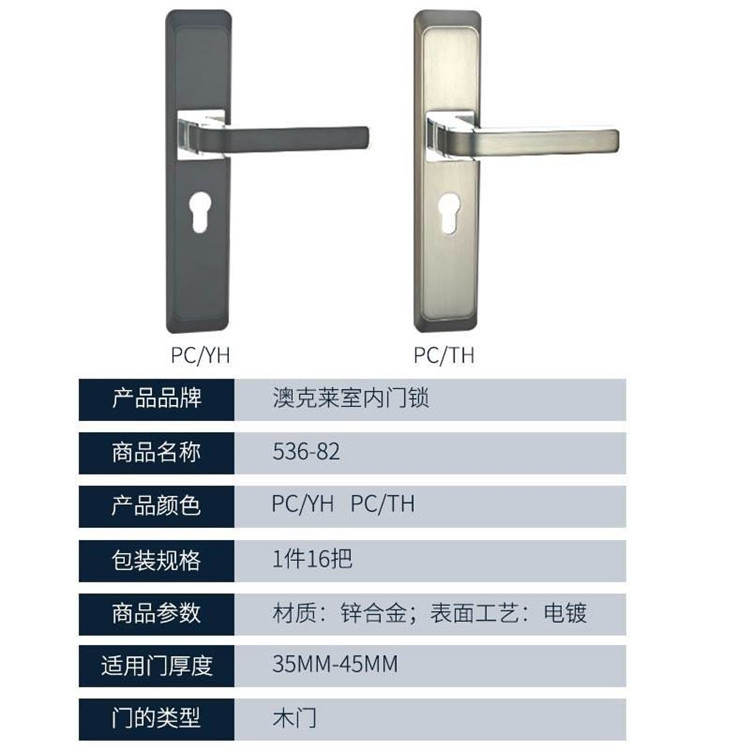 奧克萊 室內(nèi)門鎖536-82:采用優(yōu)質(zhì)鋅合金材質(zhì)。