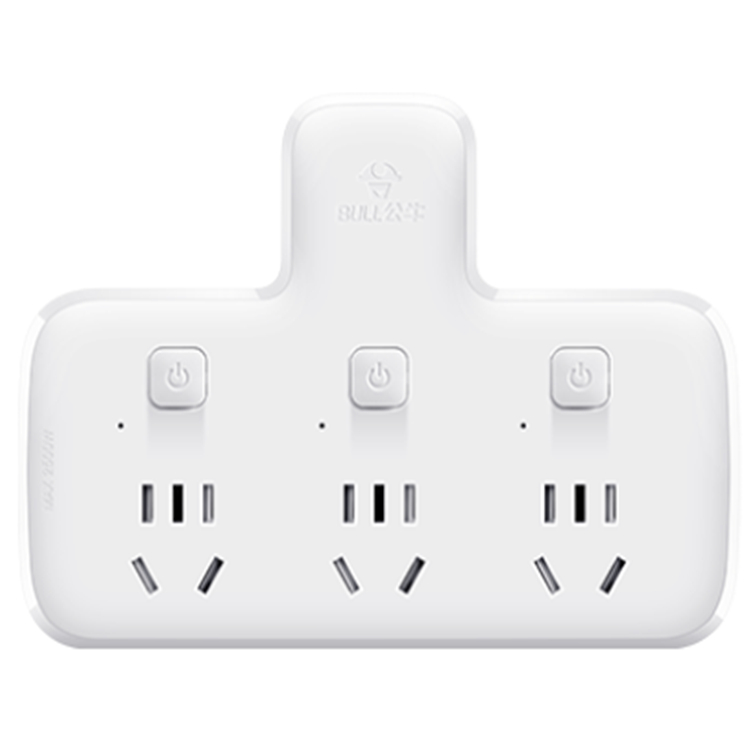 公牛一轉(zhuǎn)多轉(zhuǎn)換器GN-96033品字型設計,增加使用效率;獨立控制開關,安