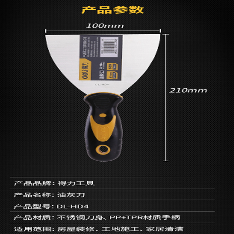 得力(deli) 不銹鋼油灰刀使用范圍廣 房屋裝修、工地施工,家居清潔等