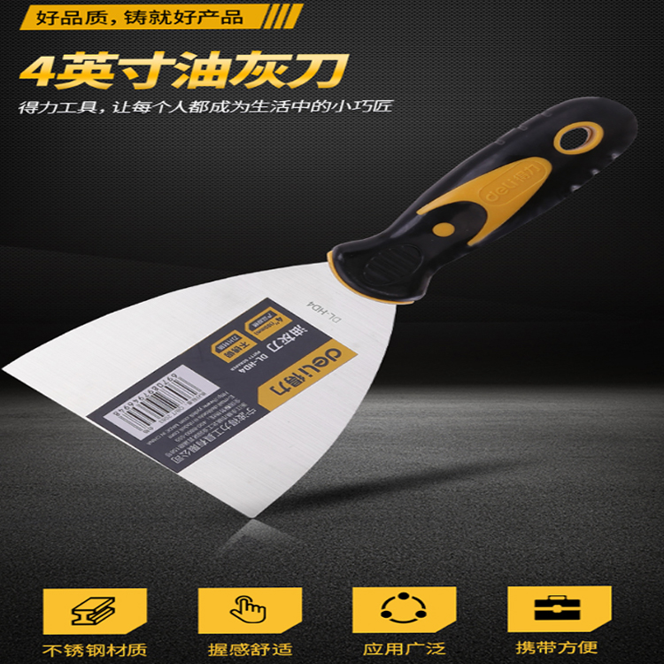 得力(deli) 不銹鋼油灰刀清潔刮刀鏟刀抹灰膩子刀4英寸 DL-HD4