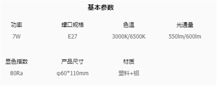 公牛愛眼燈球泡燈MQ-A107愛眼燈基本參數(shù)圖